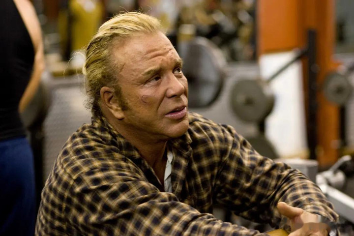在《摔角王》里,他几乎是在袒露自己的真实人生。这老头一辈子都在巅峰与谷底之间游走,银幕上是个砸不烂的硬汉,现实里更是个宁折不弯的狠角色。