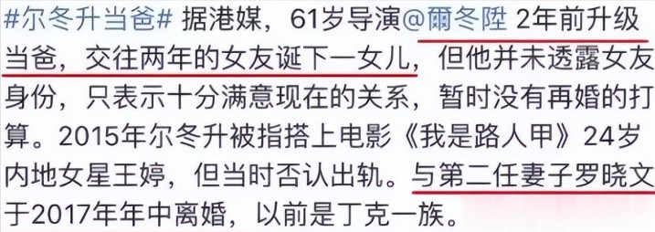 然而,尽管事业上风生水起、拿奖拿到手软,可尔冬升的感情生活,却没有这么顺遂。