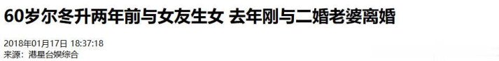 港星台娱综合——60岁尔冬升两年前与女友生女 去年刚与二婚老婆离婚