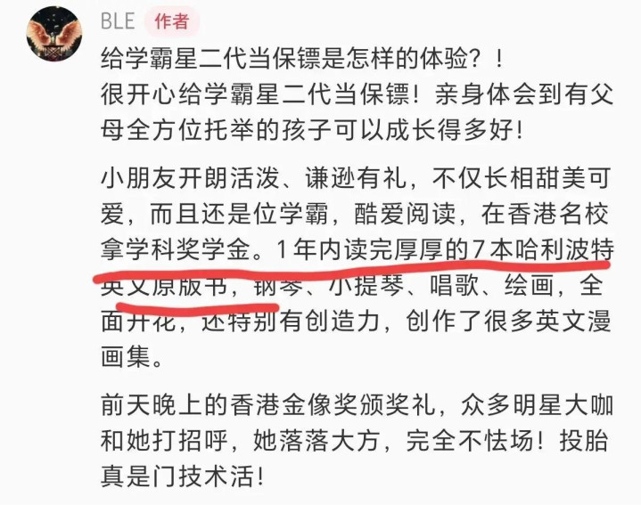 她在中英双语私立学校就读,语言表达能力突出,学业成绩始终拔尖。